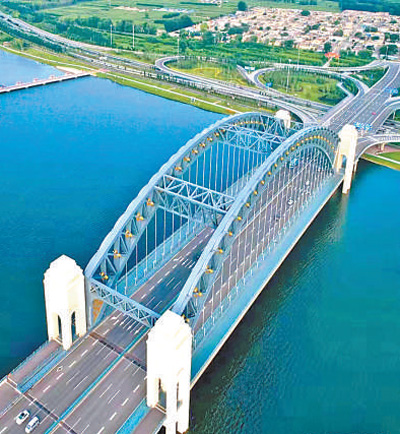 位于山西省太原市的晋阳桥,主跨204米,为下承式钢桁架拱桥,于2019年6月建成通车,横跨汾河。 付明丽 贺子毅摄影报道 |