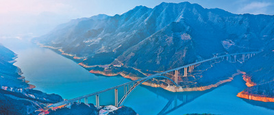 安家庄特大桥位于北京市门头沟区安家庄村,全长2.2公里,为全球首例墩顶双转体曲线钢桁梁斜拉桥,解决了钢管混凝土桥墩两端传力构造等技术难题。 本报记者 张武军摄 |