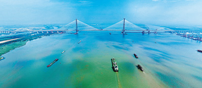 6月9日,连接江苏省常州市和泰州市的世界最大跨度斜拉桥常泰长江大桥顺利合龙。该桥全长超10公里,主跨1208米,是长江上首座集高速公路、城际铁路、普通公路于一体的过江通道。 陈 暐摄(人民视觉) |