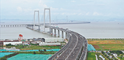 6月30日,粤港澳大湾区超级工程深中通道建成开通。深中通道是集桥、岛、隧、水下互通于一体的跨海集群工程,关键控制性工程深中大桥全长2826米,主跨1666米,主塔高270米,是世界最大跨径全离岸海中钢箱梁悬索桥。 本报记者 张武军摄 |