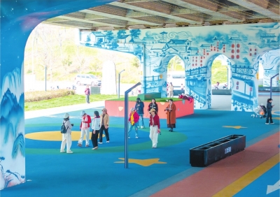 高架桥下,更是一派热闹景象:孩子们骑着自行车在彩色跑道上比赛,退休的老年人三五相约拿着手机拍摄短视频。“以前这里是一片荒地,杂草比人还高,重新修了以后,变化太大了!”家住普安新村的付友琴告诉记者,现在她和邻居们几乎每天都会步行20多分钟到这里散步。