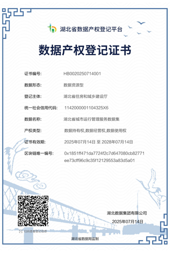 数据资产化改革初显成效,形成了“政务服务”“房地产业监管”“城市运行管理服务”高质量数据集,获得存证证书、产权登记证书及资源登记确认单,为数据资产合规高效开发利用奠定了法律基础。省住建厅试点工作路径作为示范案例在全省推广,获得住建部网站、中国建设报等主流媒体广泛宣传报道。作为试点省份,湖北应邀参与住建部“住建行业高质量数据集建设示范项目”,成为国家首批先行先试项目。