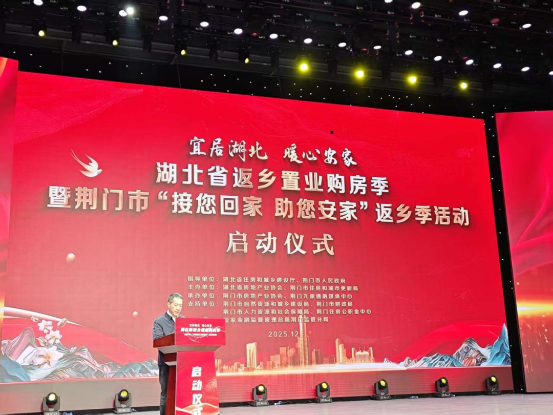 双节将至,年味渐浓!为抢抓春节返乡季前后外出人员集中返乡契机,推动建立“聚人、安居、兴业”的县域经济循环,让返乡人员“留的下、住的安、能成业”,12月29日,“宜居湖北·暖心安家”湖北省返乡置业购房季暨荆门市“接您回家 助您安家”返乡季活动启动仪式在荆门举行。湖北省住房和城乡建设厅党组成员、副厅长刘震、荆门市人民政府副市长买绘宇出席活动并致辞,湖北省房地产业协会会长潘世炳参加仪式并介绍全省活动有关情况。