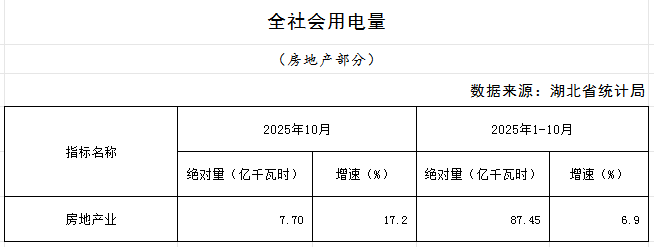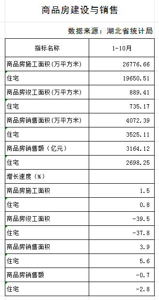 2025年10月湖北省房地产业统计数据