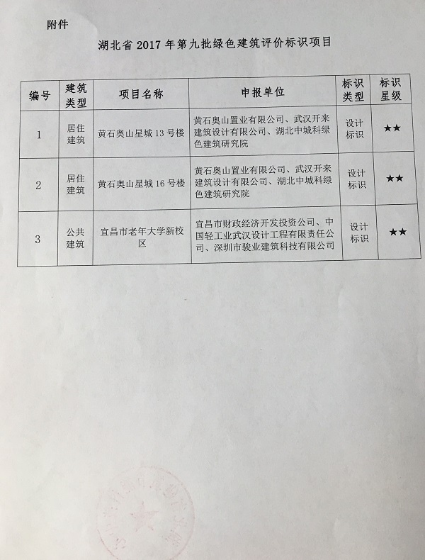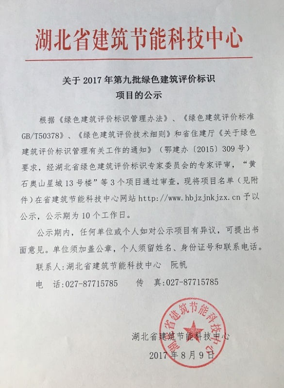 关于2017年第九批绿色建筑评价标识项目的公示