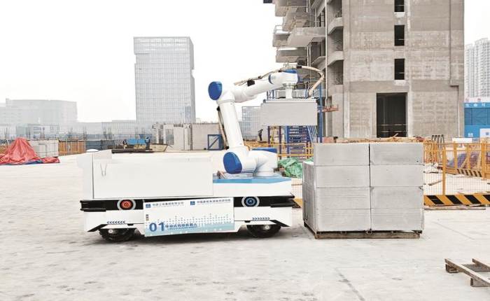 施工现场,记者注意到,造型各异的运输机器人来回穿梭,格外引人注目。“这些机器人属于无人化物料运输机器人系统的一部分,可满足高负载、全地形、可全天候作业需求。”中建三局科创公司汉韵公馆项目总工程师吴吉说。