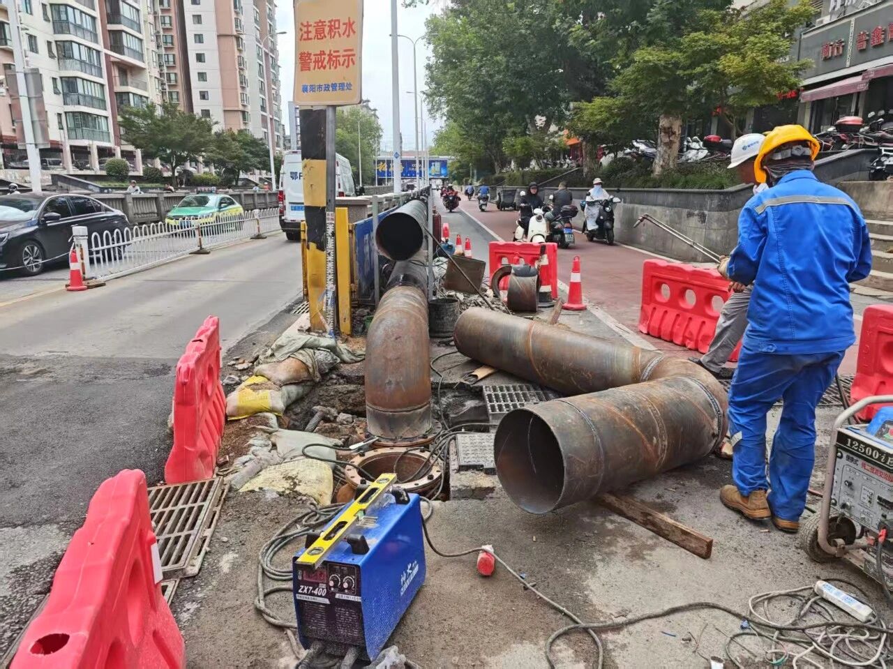 面对紧急险情,市市政管理处主动对接市交管部门,争取交通疏导支持,联合地质专家、技术骨干制定科学处置方案,组织抢险队伍冒雨进场、昼夜奋战,通过气囊封堵管道、吸污车抽水降低水位,快速控制漏水态势,并完成管道修复、基础加固与路面恢复工作。短短数日内,市市政管理处化解了该重大安全风险,确保城市“生命线”畅通无阻,彰显了“市政担当”和“市政速度”。